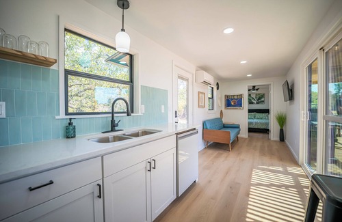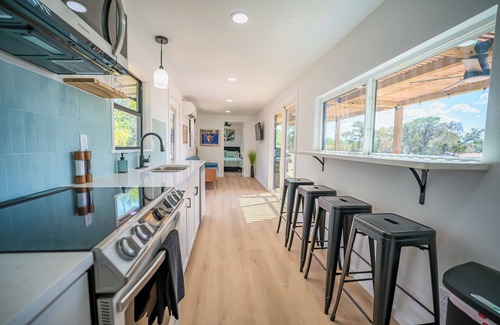 Contained in Gruene is a brand new container home build on a private property minutes from Gruene Hall! Excellent location with a country feel! Enjoy the hot tub while you watch the deer!