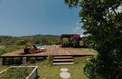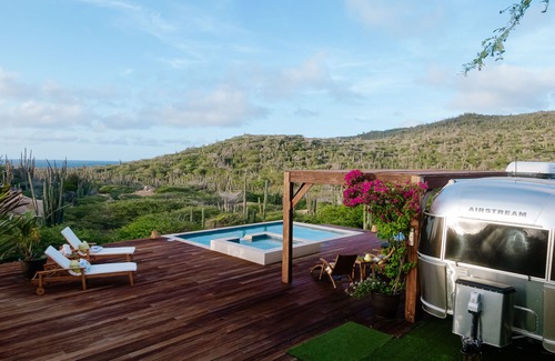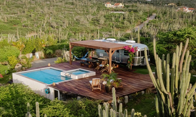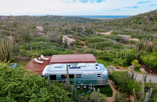 This beautifully appointed Eco friendly 30' Feet Flying Cloud RV is the only luxury Airstream glamping experience in the Caribbean. Located in peaceful nature on the North Coast of Aruba, featuring a private, deep saltwater pool and amazing cacti and ocean views. Exceptional service with attention to detail prioritizing lux sustainability. Connecting guests to unique local experiences and products, creating a truly one of a kind vacation. Looking for the coolest Airbnb in Aruba? This is it :-)