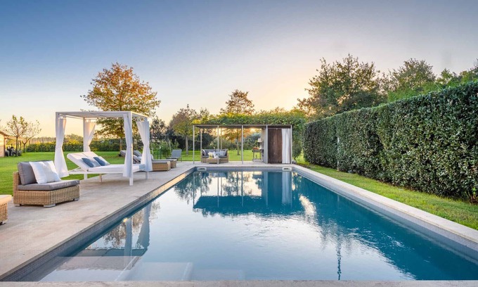 Once Upon a Time in the Heart of Tuscany...Nestled in the sun-drenched hills of the Tuscan countryside, where vineyards, olive groves and oak woods stretch to the horizon, lies a hidden gem—Villa Campanile. This enchanting contemporary farmhouse, with its 3 luxurious bedrooms and 3 stylish bathrooms, invites you to experience the magic of Tuscany in a way that blends the charm of the past with the comfort of modern living.The exterior, with its traditional terracotta roof and rustic stone walls, honors the timeless beauty of the region’s classic farmhouses. Yet, as you step inside, you’re greeted by a world of sleek design, open spaces, and warm, natural materials. Grand glass walls frame panoramic views of the lush garden and the sparkling private pool, bringing the serenity of the landscape right into your home. The gentle Tuscan light dances across the contemporary furnishings, creating a peaceful and welcoming atmosphere that feels both fresh and timeless.Each room is a sanctuary—perfectly designed to offer peace and privacy while remaining open to the surrounding beauty. Whether you’re lounging by the poolside, soaking in the garden views, or enjoying a quiet evening under the pristine sky, Villa Campanile promises to be your personal escape, where relaxation and inspiration flow freely.Just minutes from the quaint villages of Villa Campanile and Orentano, you’ll have easy access to charming local shops, artisanal groceries, and authentic Tuscan restaurants that serve dishes crafted with love and the finest regional ingredients. The location is a gateway to Tuscany’s most beloved destinations. Within a short drive, you can explore the medieval treasures of Lucca, the iconic towers of Pisa, the artistic wonders of Florence, the rolling hills of Chianti, the sandy shores of Versilia, and the romantic, historic streets of San Gimignano and Volterra and of course savour the famous Truffles in San Miniato.Whether you wish to immerse yourself in the rich culture of the region, savor its culinary delights, or simply unwind in the beauty of the countryside, Villa Campanile offers the perfect blend of modern luxury and rustic charm. It’s not just a vacation rental—it’s a place where your own fairy tale in Tuscany begins.Come, let your story unfold here.Included in the rental price:Final CleaningTowels and linensElectricityGasWaterInternet WifiHigh chair (upon request at booking)Babycot (upon request at booking)Not included in the rental price:Tourist tax (where mandatory and required by local municipality)Midstay and/or weekly cleaning and change of towels and linensBaby cot's linensPlease note that while a wood-fired oven and fireplace are present on the property, they are not available for use due to safety reasons