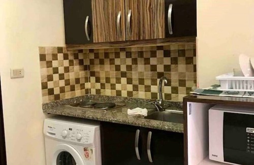 The kitchenette is equipped with all the essential appliances , cookware and utensils for cooking and dining. Also, there are a washing machine and an iron. The place is furnished in a way to make you feel like home, including cozy sofa and cabled TV for chilling out, and king sized bed for your comfort.