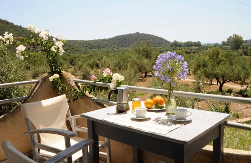 Private balconies with sea views. We have a garden and an olive grove.