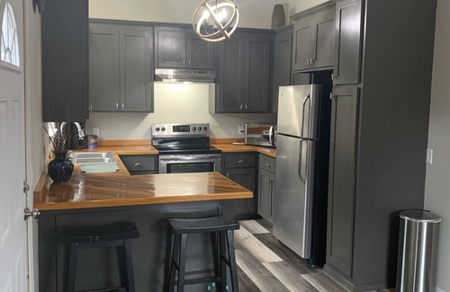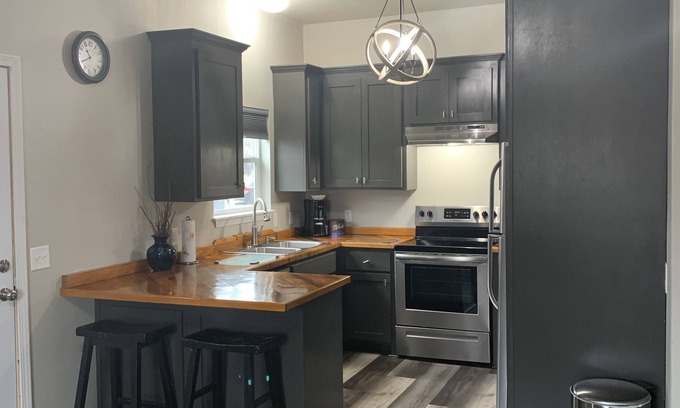 This cozy yet spacious downtown apartment is just a place to stay in downtown Tahlequah. The kitchen is simply fantastic offering all stainless steel appliances, custom wood countertops, with a standout chandelier. The first bedroom offers a new therapeutic king mattress with soft cotton sheets and great pillows for a great night sleep. Nice nightstands And ceiling fans for your comfort. Pull down blackout shades a large walk-in closet and a small desk vanity are provided the second bedroom offers a new therapeutic queen mattress, Cotton sheets, blackout shades, handbuilt side table from the original construction, a large closet ,ceiling fan. A full sparkling clean bathroom with cotton linens, fresh fan exhaust, shampoos, personal hygiene, etc. Also, an energy-efficient stackable washer dryer With laundry detergent and fabric sheets. We are within walking distance of so many places restaurants, nightlife, cafés, diners, coffee shops, Internet shops, ice cream, library, wedding chapel, NSU, Shops, boutiques, video gaming, historic walking trails and creeks. Many other locations within a short drive. 2 miles from the Illinois River. Minutes to Lake Tenkiller and lake fort Gibson, Cherokee springs golf course. Cherokee casino, cherokee Nation etc. Many float places to choose from on the Illinois River.