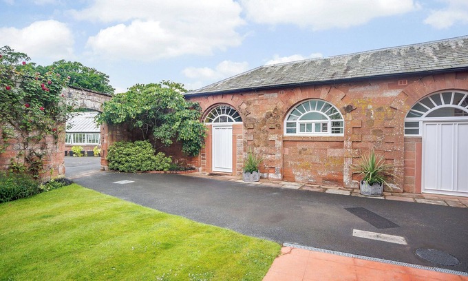 Bedroom 2: Kingsize (5ft) Bed Ensuite: Cubicle Shower, Toilet. Gas central heating, gas, electricity, bed linen, towels and limited Wi-Fi included.. Private parking for 2 cars. No smoking.. Courtyard is a beautifully converted former apple store in the grounds of the gorgeous Corby Castle Estate. It is an attractive little getaway and a base for adventuring around the Cumbrian countryside. All on the ground floor, you step into a bright kitchen/dining room with an adjoining cosy living room which is filled with light from the long windows overlooking the working Estate walled garden. Two luxurious bedrooms boasting quality linens and towels are found along the corridor and both are complemented by en-suite shower rooms. Courtyard offers quality and comfort throughout and is the perfect place to enjoy a well-earned break in the beautiful Cumbrian countryside.
