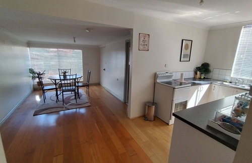 The apartment consists of two separate bedrooms both with comfortable queen size beds, a separate kitchen, a spacious lounge with flat screen TV and Netflix and separate dining room. There is also a combined bathroom and laundry complete with shower, toilet, washing machine, ironing board and iron.
