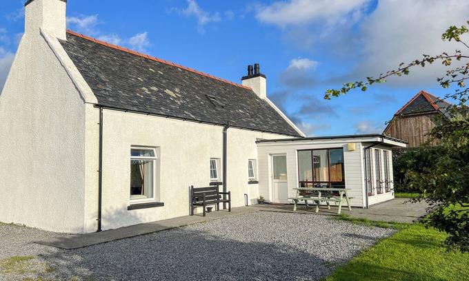 Amenities: Electric central heating and electric fire. Electric oven, grill and hob, microwave, fridge/freezer, washing machine, dishwasher. TV, DVD player. Fuel and power inc. in rent. Bed linen and towels inc. in rent. Cot available on request. Private off-road parking. Wrap-around gardens with lawns, gravelled area, furniture. Pet-friendly. Sorry, no smoking. Shop 3.1 miles, pub 3 miles. Note: Though electricity is included in the rent, electric for charging cars is not included in the rental. Please note: This property only accepts week-long bookings between May - October. Note: Travel Advisory: CalMac is the ferry operator to the Outer Hebrides, for ferry timetables, visit Calmac.co.uk. Lochboisdale has ferry links to Mallaig (please check timetables for more information). Lochmaddy on North Uist has ferry links to Uig on Skye. To travel north to Harris and Lewis, take the ferry from Berneray to Leverburgh, which is approximately a 60-minute drive. To travel south to Barra, the ferry from Eriskay to Barra. Drive Times from Ferry Terminals. Lochboisdale Ferry Terminal: 10 minutes. Lochmaddy Ferry Terminal: 1 hour 15 minutes. Berneray to Harris Ferry: 1 hour 30 minutes. Eriskay to Barra is about a 10 minute drive. (Please note: Sykes is not responsible for ferry bookings or any delays in travel times.)