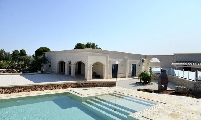 The Villa is located on more than 1.5 hectares of private fenced land immersed in the quiet countryside near Manduria, just a few minutes from the crystal clear Apulian sea and the center of Manduria, the capital of Primitivo wine.