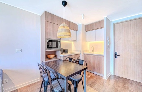 Espacio acogedor y bien diseñado, cuenta con 1 dormitorio, 1 baño y 1 litera en espacio común separado del living y cocina.