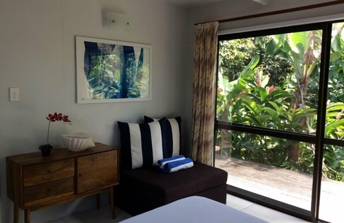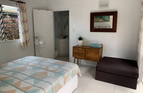 This classic little beach house/studio provides a perfect getaway for couples and friends. From the house, walk 3mins to popular Muri beach or 3mins either way to resorts and cafes. There's a decent sized yard and ample parking.