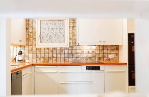 The self-contained kitchen is well-equipped with an oven, an electric cooker, a refrigerator, a dishwasher, a microwave, a coffee machine (Nespresso), a toaster, a kettle, two fondue sets, and a raclette set. Additionally, there is a separate room with a washing machine, dryer, and freezer, all of which are available for your use. An iron and an ironing board are also provided. Wi-Fi internet is available throughout the apartment.