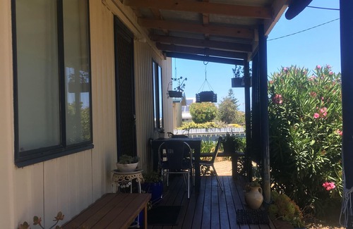 There is a front deck for relaxing and viewing the Steamranger train when it passes by. The back of the house has a covered outdoor area. A carport provides undercover parking for a car.
