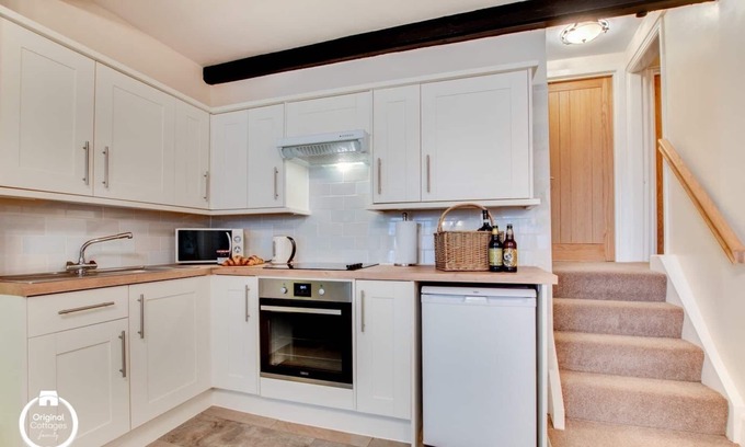 This delightful, easy access ground floor, two bed sea front apartment has lovely views over Sandsend Bay. In the summer take in these views of the sea and beach which are literally on your doorstep, whilst in the cooler months snuggle up and take advantage of the cosy surroundings with full central heating and listen to the waves on the shore. The open plan, well equipped kitchen, lounge, diner have some traditional features with beamed ceiling. The property has a small shared patio with outside seating. This property has been recently refurbished with many new features making this a very attractive holiday let in one of the country's most unique picturesque and popular seaside villages. It is ideal for walkers with many national park routes close by. Tea shop is two minutes' walk away. Towels Not Provided.