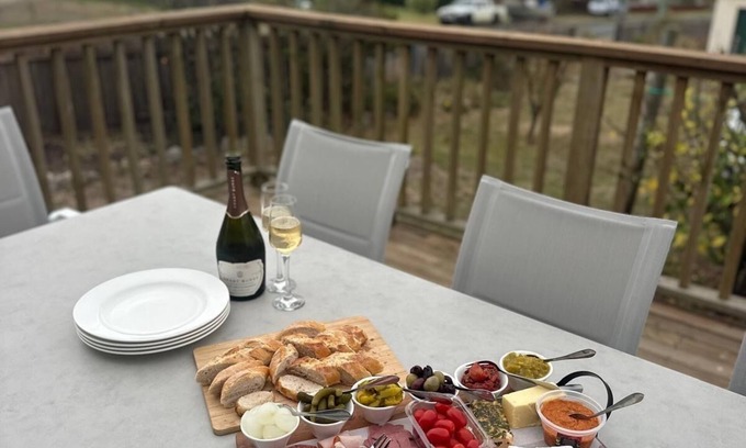 The renovated kitchen is equipped with stove/oven, large fridge/freezer, dishwasher, microwave, Nespresso pod machine, toaster and kettle, sandwich press, slow cooker etc. Crockery, cutlery, cookware and glassware to ensure for your catering needs.