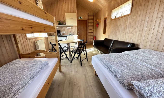 The cottage is one area and has double bed ( 140x200cm ) and bunk bed ( 2x 90x200 cm ).