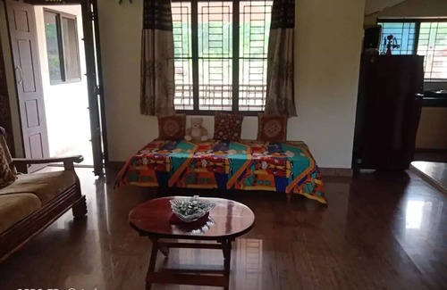 Home stay with AC bedroom and kitchen, with balconies to enjoy the nature, peacocks and organic Vegetables garden which sure will make your mind refreshed and body rejuvenated. A river nearby to add to.