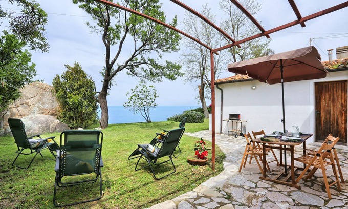 In the midst of idyllic nature, in a hilly environment and absolutely quiet location on the edge of the Parco Naturale dell'Arcipelago Toscano, lies the holiday house Casa La Capraia in the holiday resort Zanca and offers space for up to 6 people. The cosy little house, an old farmhouse from the year 1600, consists of a living-dining area with fireplace and 2 sofa beds (for one person each), a well-equipped kitchen, 2 bedrooms and a bathroom. There is also WLAN, cable TV, heating and a baby cot. A parking space is available on the property. The highlight is the shared Mediterranean garden with garden furniture and a barbecue, which offers a fantastic view of the sea and the surrounding mountains. The next beach in a picturesque, small bay can be reached on a footpath through the nature park in 15 minutes. A small supermarket is only a 2-minute walk away, restaurants and bars can be found in the neighboring village of Sant' Andrea, which can be reached in 5 minutes by car.