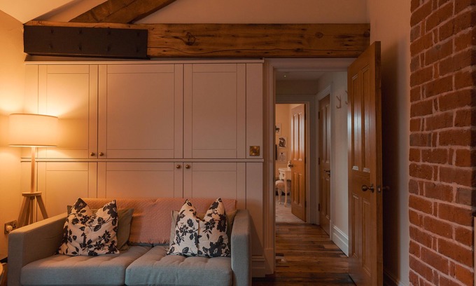 Entering through the beamed communal entrance hall, the Edmund Suite (named after the Jodrell family) is a cosy one bedroom apartment on the first floor, adjacent to the Roger Suite.