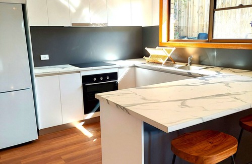 Enjoy this peaceful stylish unit 15 minutes walk from Devonport's supermarkets, restaurants, beaches and walking tracks. Fully furnished including laundry facilities. Block-out blinds in the bedrooms for extra sleep. remote control garage door with internal access. Outdoor sitting area. Dedicated workspace. Shower and separate bath. Separate toilet. Queen bed in main bedroom and 2 singles in the second bedroom. Tons of cupboard space. Air conditioning. Brand new kitchen.