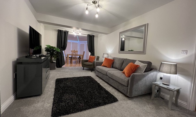 There is private parking in front of the property and there is also free Wi-fi and Sky Q. The 3 seater sofa in the living room turns into a sofa bed should you require extra sleeping space! There is a full kitchen with dishwasher along with a dining area at the rear of the property in a glass conservatory so you can roll back the blinds and look at the stars! The bathroom has underfloor heating to keep your feet warm on chilly mornings along with a heated towel rail and illuminated heated mirror to make your stay as comfortable as possible.