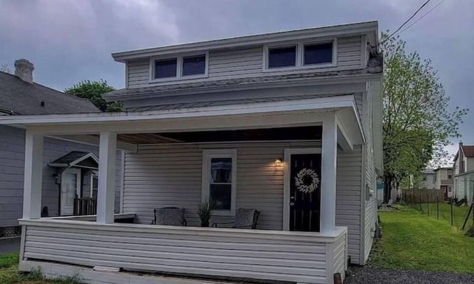 Cozy 3 bedroom, 2 bath home (926 sqft), very accessible with one bedroom (full bed) and full bathroom on main level. Second floor has 1 full bathroom and 2 bedrooms which offer a full bed and a queen with a double futon and 43" roku TV. This classic cottage has a large living room with section couch, 55" Roku TV, eat in kitchen (dining has high top table for 4), butcher block counter top and laundry room. Fully fenced back yard, pet friendly. central air