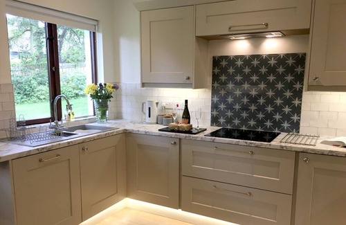 The Lodge is perfect for a family. There are 2 bedrooms and it will sleep 5 comfortably. Combined with the Cottage it can be opened up to form one large holiday let if requested.