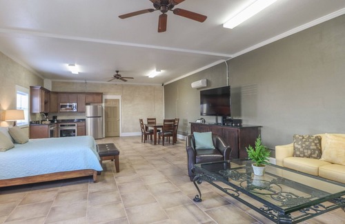 BIKES ARE PROVIDED FOR TOURING DOWTOWN AREAS, PACK A PICNIC AND RIDE DOWN TO THE BEACH FOR A FUN AFTERNOON. LARGE STUDIO HAS OPEN CONCEPT, BAR, AND SMART TV.
