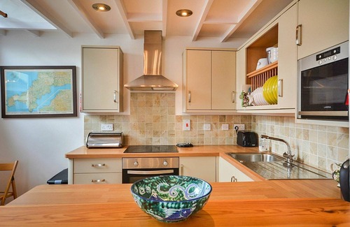 Set across two inviting floors, this charming cottage offers a perfect retreat for small families or couples seeking a coastal getaway. The ground floor features a bright, semi open-plan living room and kitchen area, with exposed stone walls adding rustic charm. Relax in the welcoming living space equipped with a smart TV, or gather around the table in the modern kitchen, which provides all the essentials for preparing delicious meals. A conveniently located bathroom with a bath and overhead shower ensures you can easily refresh after a day spent exploring the nearby beaches or enjoying outdoor adventures. Upstairs, the accommodation comfortably sleeps up to four guests with a cozy double bedroom featuring a charming fireplace, and a bunk room suitable for children or adults alike. This versatile space makes the cottage ideal for couples, small families, or friends looking for a peaceful base in a picturesque setting. The cottage is perfectly positioned amongst the narrow streets of a historic village, just a short stroll from golden beaches, traditional pubs, and well-regarded restaurants, offering a true taste of coastal Cornwall. While private parking isn’t available, a nearby pay-and-display car park is less than two minutes away on foot. The property includes free Wi-Fi, linen, and towels (please bring your own beach towels), and is pet-friendly, welcoming your furry friends for an additional fee. With its convenient location and cozy atmosphere, this cottage provides a lovely home-away-from-home for exploring the scenic coastline and charming village life.