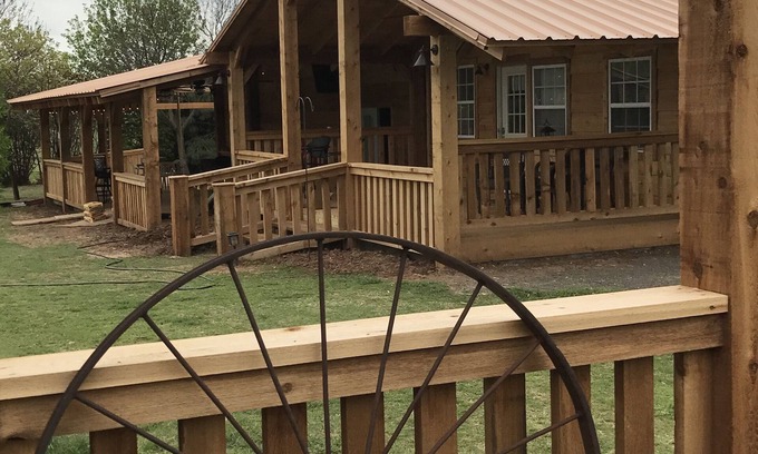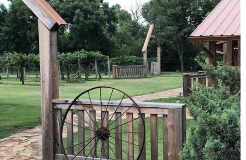 We have 10 acres nestled Northwest of Oklahoma City and West of Edmond. The Cottage's cedar porch offers sunset views, the north gives you the peacefulness of our vineyard. We also have darts, cornhole and a couple other fun games for the asking. The pond has plenty of fish who love to be fed in the early evening.