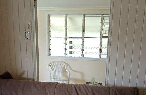 Quaint and comfortable 2 bedroom cottage with polished floors and high ceilings. This house offers wonderful charm for your stay with plenty of areas to sit and relax. The area is peaceful and quiet and has wonderful breezes from the ocean. kitchen laundry washing machine. loads of chairs tables and out door seating areas to relax.