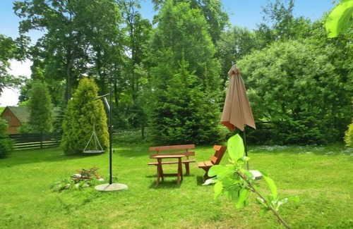 Cottage with large garden near lake is located in Biskupiec. Cottage with large garden near lake provides accommodation, featuring Balcony/Terrace, Fireplace/Heating, Barbecue/Outdoor Cooking, among other amenities. This House features Balcony/Terrace, Fireplace/Heating, Barbecue/Outdoor Cooking, to make your stay a comfortable one.