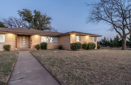 Relax with the whole family at the peaceful Cotton Court located just outside of Lubbock. Escape to the country side without worry. The Cotton Court property can sleep 7 guests with a king and two queen beds with extra space on the couch. This house features fast wifi a fully-stocked kitchen for all your cooking needs new mattresses and plenty of parking space. With a quick drive into town you can explore all the restaurants entertainment and events Lubbock has to offer.