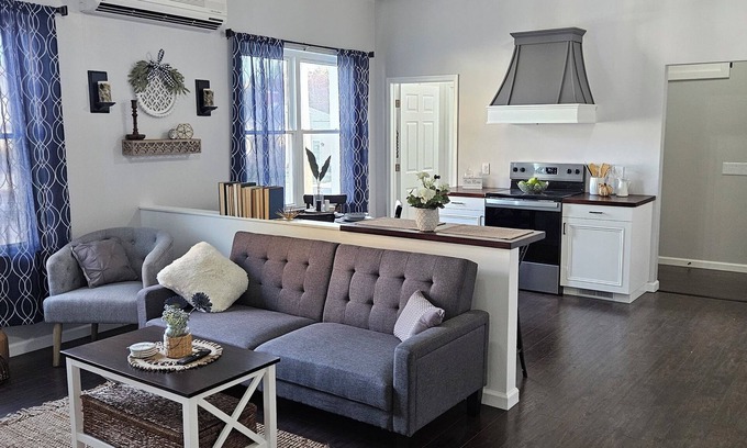 Combining modern finishes and rustic country charm, this captivating 3 bedroom apartment, provides all the pleasures of a hotel, but in a fully furnished private residence. Inside, be treated to spacious open living and dining areas, a fully equipped kitchen, wifi, and free full use of the laundry facilities. We also provide free private parking and can accommodate multiple vehicles.Located just minutes from amazing restaurants, BBQs, cafes, breweries and more (including the infamous "Iron Triangle" for any train afficionados).This suite is perfect for weekend getaways, business trips, newlyweds/ wedding guests, visiting family or just a cozy home base while exploring everything our community has to offer.
