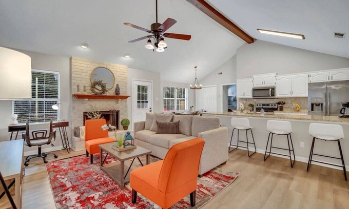 Discover tranquility at our Country Getaway in Richmond Hill, GA, just a stone's throw away from the vibrant city of Savannah. Nestled in a picturesque setting, this retreat offers a peaceful escape with tastefully furnished interiors and a cozy living room. Step outside to a spacious backyard, perfect for outdoor activities and stargazing. Immerse yourself in countryside beauty while enjoying modern comforts. Your serene getaway awaits!