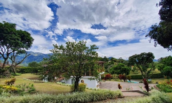 La piscina es de agua natural de la montaña por lo que es fría pero durante el día se calienta el agua naturalmente con el sol. Caminando hacia abajo donde termina la propiedad a unos 10 minutos se encuentran los cultivos de Naranja, Papaya, Mandarina, Yuca, Guanabana, Limón. Les dejamos en obsequio una canasta con frutas de la cosecha en la cocina para que puedan probar las frutas.