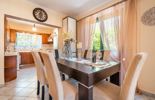 The country house Villa di Lucia, which is situated in Rhodes, overlooks the nearby mountain. The 120 m² property consists of a living room, a kitchen, 3 bedrooms and 1 bathroom and can therefore accommodate 6 people. Additional amenities include Wi-Fi, a TV, air conditioning as well as a washing machine. A baby cot is also available. This vacation rental features private terraces, both open and covered, ideal for relaxing and enjoying the evening atmosphere.