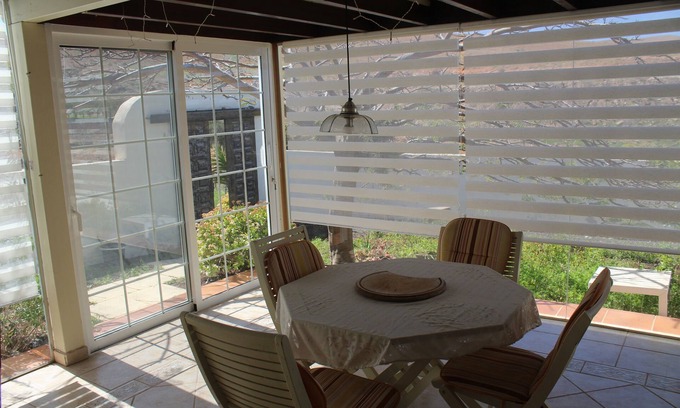The house is located in the Santa Inés Valley. It is a small house but with spacious rooms, it has 2 bedrooms with a bathroom each and a very practical kitchen. All rooms are around a terrace that is largely glazed. The house does not have a lounge or TV.