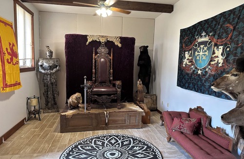 Unique Birdsell Castle sits on a small farm in Charlestown, IN but yet minutes away from Louisville, KY. With major attractions like Charlestown State Park, Bushman’s Marina, Louisville Waterfront, KFC Yum Center, Louisville Slugger Museum, plus many more places to explore. Each suite in this unique castle are extra large with tall ceilings, King size beds, private full bathroom, flat screen tvs, plus many extras. Come and stay like royalty, experience the dungeon, peacefulness of the courtyard, massive dining hall, farm animals, the beauty of nature.