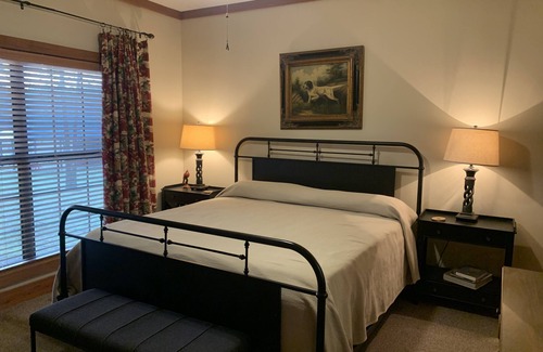 If you like tin roofs, porch swings, rocking chairs, country quiet and long walks among stately oaks and Loblolly pines, you will love Echeconnee Plantation Lodge, a beautiful six bedroom lodge nestled in the middle of two thousand acres of natural beauty. Enjoy the use of one hundred acres surrounding the lodge as you bike or hike the numerous trails in this prime quail, turkey, and deer habitat. Catch and RELEASE the bream and bass or simply canoe across the eleven acre lake to check out the other shore. Try a game of corn hole, a lively game of ping pong or simply sit on the screened porch and watch the sun go down—or come up—as you enjoy a setting of complete serenity.