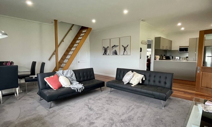 The main downstairs living area can also be used for additional guests (or kids) with 2 x sofa lounge's upon request.