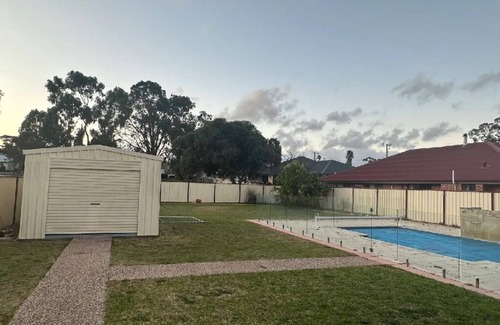There is a big pool, patio and large backyard with a park directly at the rear of the accommodation.