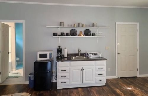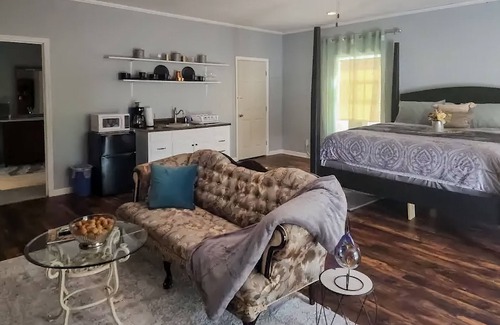 Cozy Studio Pad: For solo travelers or business professionals, our studio-style pad features a king-size bed, kitchenette with a microwave and small refrigerator, and a comfortable couch with a 55" TV for your entertainment. It’s the perfect space to relax after a busy day.
