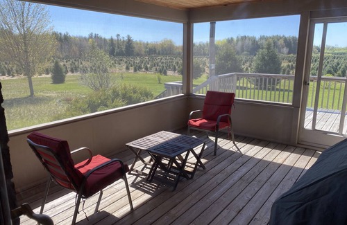 Comes with sun room and deck. The property is 88 acres with small water pond. 30 acres is being used for Christmas farming. The is located on 5 acre. Rest of property have mature trees and trail. Guest are allowed only for house not rest of place.