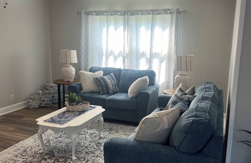 Relax in this beautifully decorated 2-bedroom home, perfect for couples, families, or small groups. Enjoy two comfy queen beds, a sparkling clean bathroom, and a cozy living room with a large sectional and sleeper sofa.
