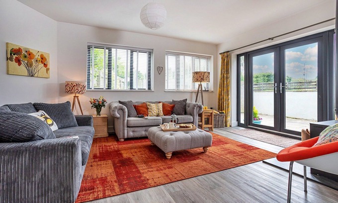 Nestled in the scenic Cumbrian countryside near Rosley and Wigton, this pet-friendly semi-detached retreat is perfect for families and friends seeking comfort and rustic charm. Surrounded by lush greenery, the garden and patio offer a peaceful space for al fresco dining or relaxing with your furry companions after a day exploring. Inside, the open-plan living area features cozy sofas and a log burner, creating a warm, inviting atmosphere, ideal for unwinding with pets by your side. A separate family room with a Smart TV and Wi-Fi provides extra space for relaxation, ensuring everyone feels at home. The fully equipped modern kitchen makes meal prep easy, with an adjacent dining area and breakfast bar for sharing meals and conversations. The home sleeps up to six across three bedrooms: a main king-size with ensuite shower, two versatile bedrooms with super-king or double beds (which can be made into singles), and a sofa bed in the family room for additional guests. A cot is also available for young children. The surrounding countryside and nearby trails are perfect for long walks with your dogs, including routes to local pubs like The Royal Oak at West Curthwaite. Located near the Lake District and Solway Coast, this home is an excellent base for outdoor adventures and exploring charming villages and historic sites. Parking for three cars, secure bike storage, and outdoor electrical sockets are provided. Please note, the property is in a friendly neighborhood and not suitable for stag, hen, or large parties. A security deposit of £300 applies, and prior confirmation is required. For more details and bookings, contact Finest Retreats.