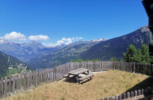 The front door opens to a garden area with beautiful and extensive views of the Tarentaise valley.