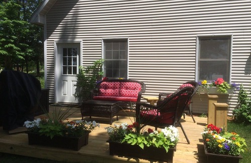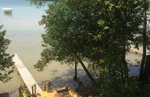 private. Kitchen is equipped with microwave, refrigerator/freezer/icemaker. Range and microwave. New cabinets with granite countertops. Use this as your base of operations to see and enjoy all that Leelanau County and the Grand Traverse region has to offer. Great biking with the new heritage trail nearby. Visit historic fishtown in Leland, tour some of the areas great wineries. Charter a trip to fish for salmon out of either Glen Arbor or Leland. Traverse City is only half an hour away and is a foodies paradise with dozens of really fine restaurants and micro breweries. The apartment overlooks both Big and Little Glen. Enjoy great sunsets over the dunes from your own private deck right next to Glen Lake. Bring your boat and use the dedicated anchorage and your own private dock for great swimming and fishing.