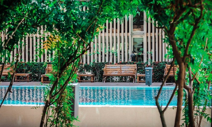 Recreational amenities at the hotel include an outdoor pool and a 24-hour fitness center.