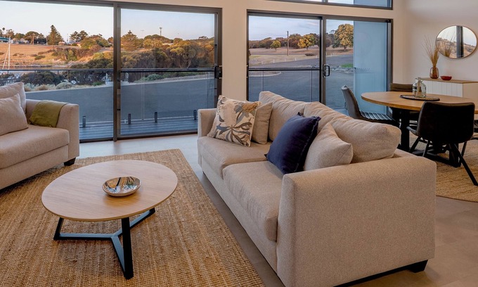 The apartment is home to Australia’s first settlement with ocean front address. The large balcony with incredible marina and ocean views beautifully decorated and located near the Penneshaw town centre and just a short walk from Restaurants, Hotel, Supermarket, and breathtaking uninterrupted views. It delivers the ultimate in coastal living for a break away from everyday life.