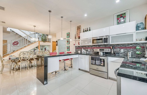 Covered Patio & Grill: Colorful McAllen Home is located in McAllen. Covered Patio & Grill: Colorful McAllen Home provides accommodation, featuring TV, Security/Safety, Barbecue/Outdoor Cooking, among other amenities. This House features TV, Security/Safety, Barbecue/Outdoor Cooking, to make your stay a comfortable one.