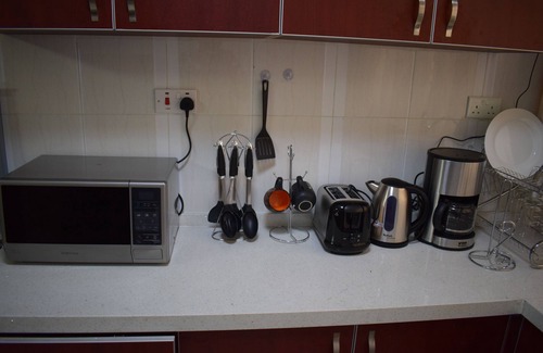 our apartment is tastefully furnished with varied themes to offer guests a wide choice. The apartment has a satellite TV on each room, private safe box, telephone directory, mini bar, hair drier, electric kettle, weighing scales, Iron box, washing machine, electrical/gas oven and hot shower.