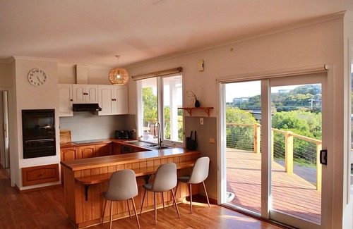 With three generous bedrooms, a fourth tv-room/bedroom, two bathrooms and two spacious living areas with glimpses of the ocean, there’s plenty of space for everyone. Add to this, there are large front and rear decks, as well as a massive lawn, which is always a hit with the kids! Whether you’re looking for a classic beach holiday, or a winter escape cooking-up a storm for friends and family in front of the wood fire, this house has something for all.